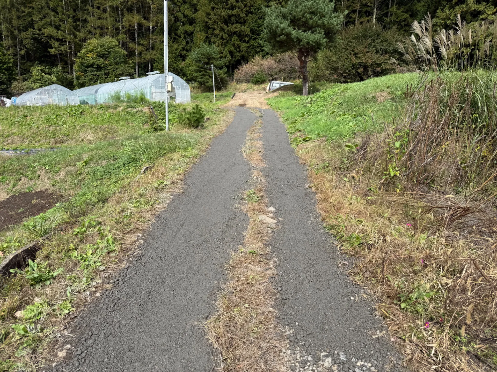 雨で砂利が流れてしまい、溝が出来た道でした!